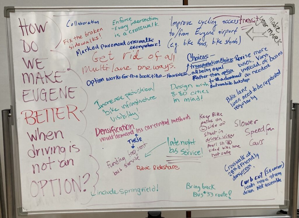 - 6:30–6:45 pm: Local Response — Hear from Eugene Mayor Kaarin Knudson, Lane Transit District CEO Jameson Auten, and other community leaders about what to do locally.