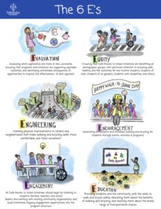 According to the Safe Routes Partnership, the Six E’s of Safe Routes to School include: